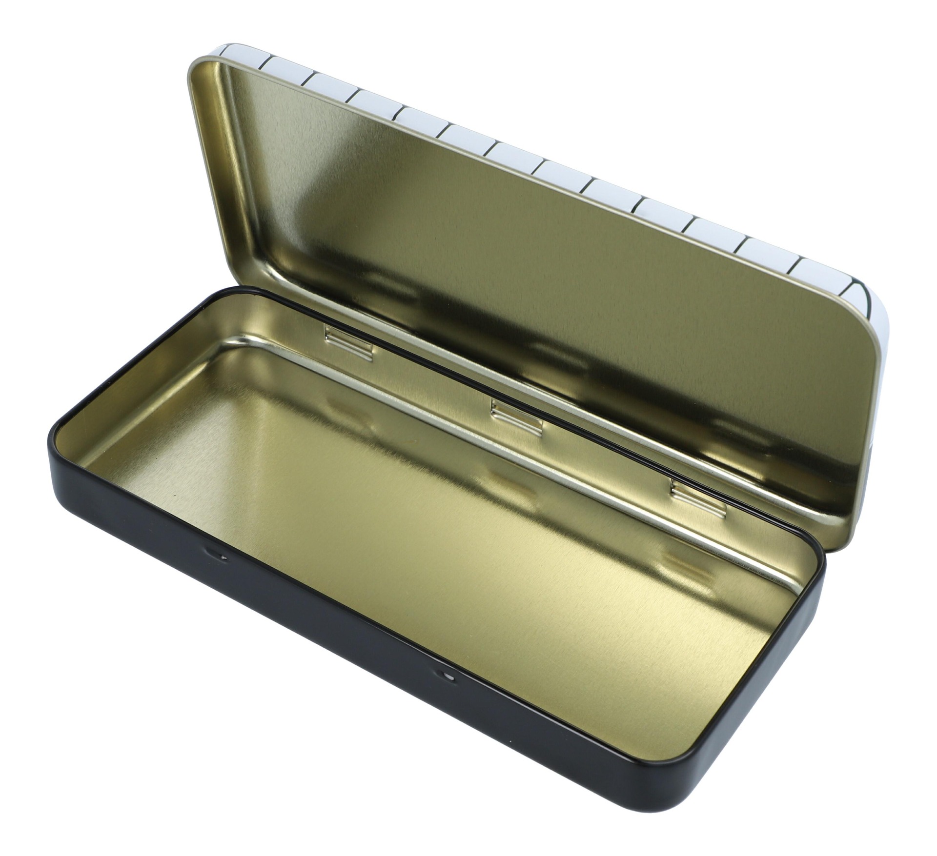 Handig blik om bijvoorbeeld pennen en potloden in op te bergen.