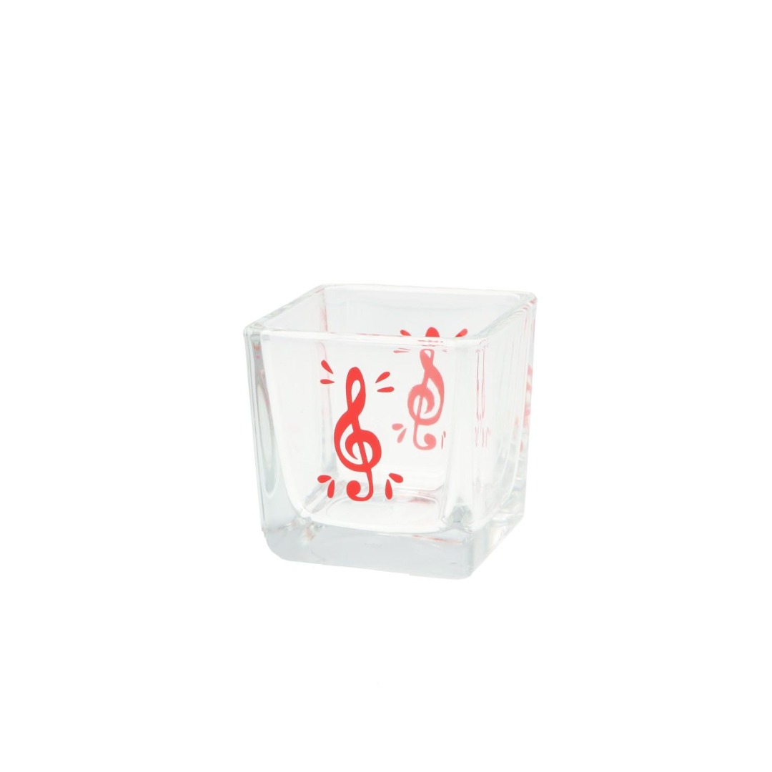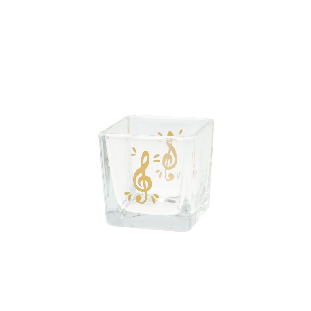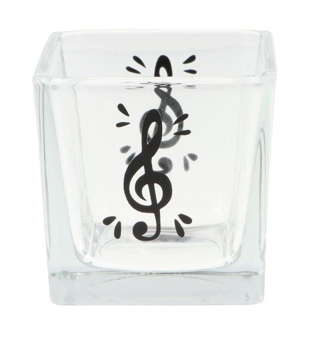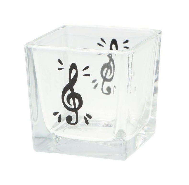 Waxinelichthouder glas vierkant vioolsleutel zwart