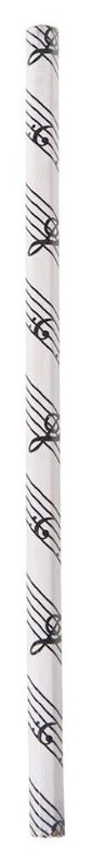 Wit potlood met zwarte opdruk van notenbalk met viool- en bassleutels.