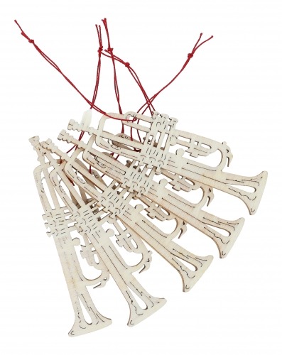 Houten hanger in de vorm van een trompet.