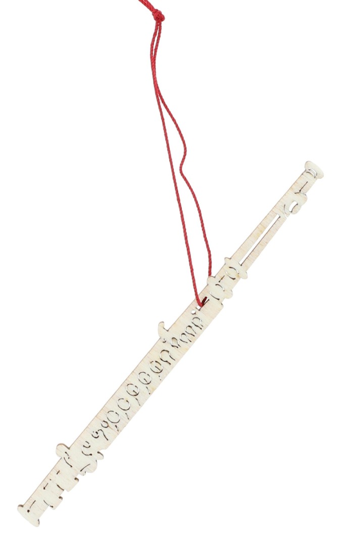 Houten hanger in de vorm van een dwarsfluit.
