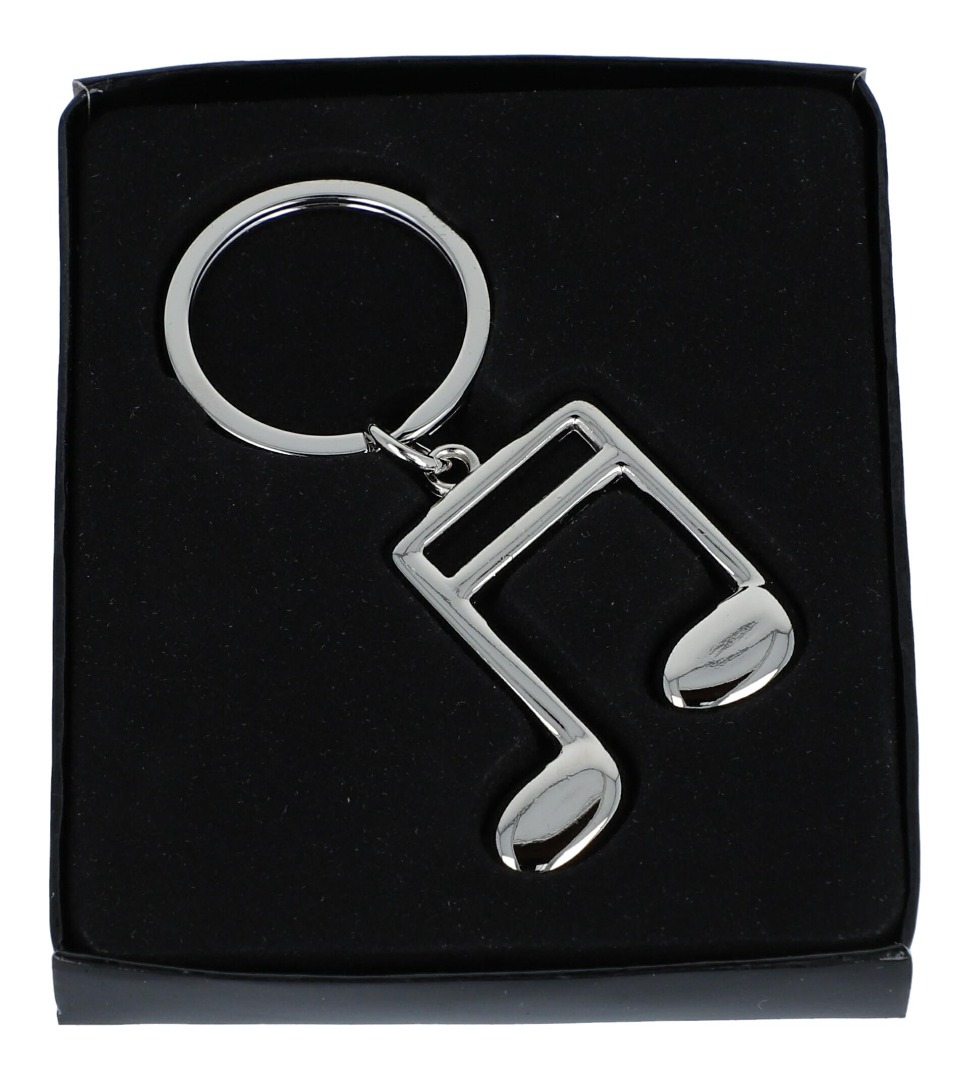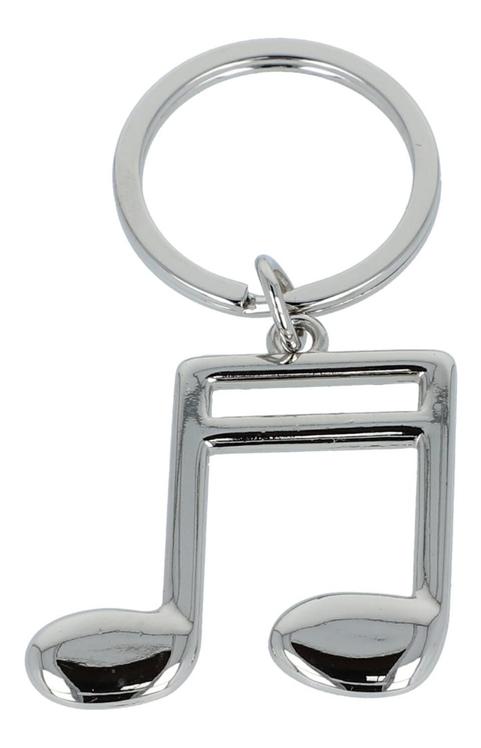 Mooie, degelijke sleutelhanger van metaal in de vorm van 2 zestiende muzieknoten.